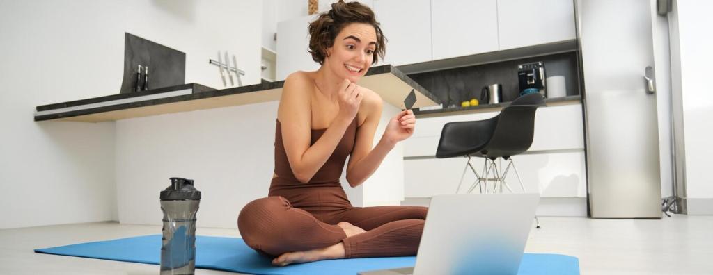 Starte mit Box-Kniebeugen, wandere zur freien Kniebeuge, dann zu Bulgarian Split Squats. Beim Drücken von Wandliegestützen über erhöhte Liegestütze zu regulären. So bleibt dein Training nachvollziehbar und sicher.
